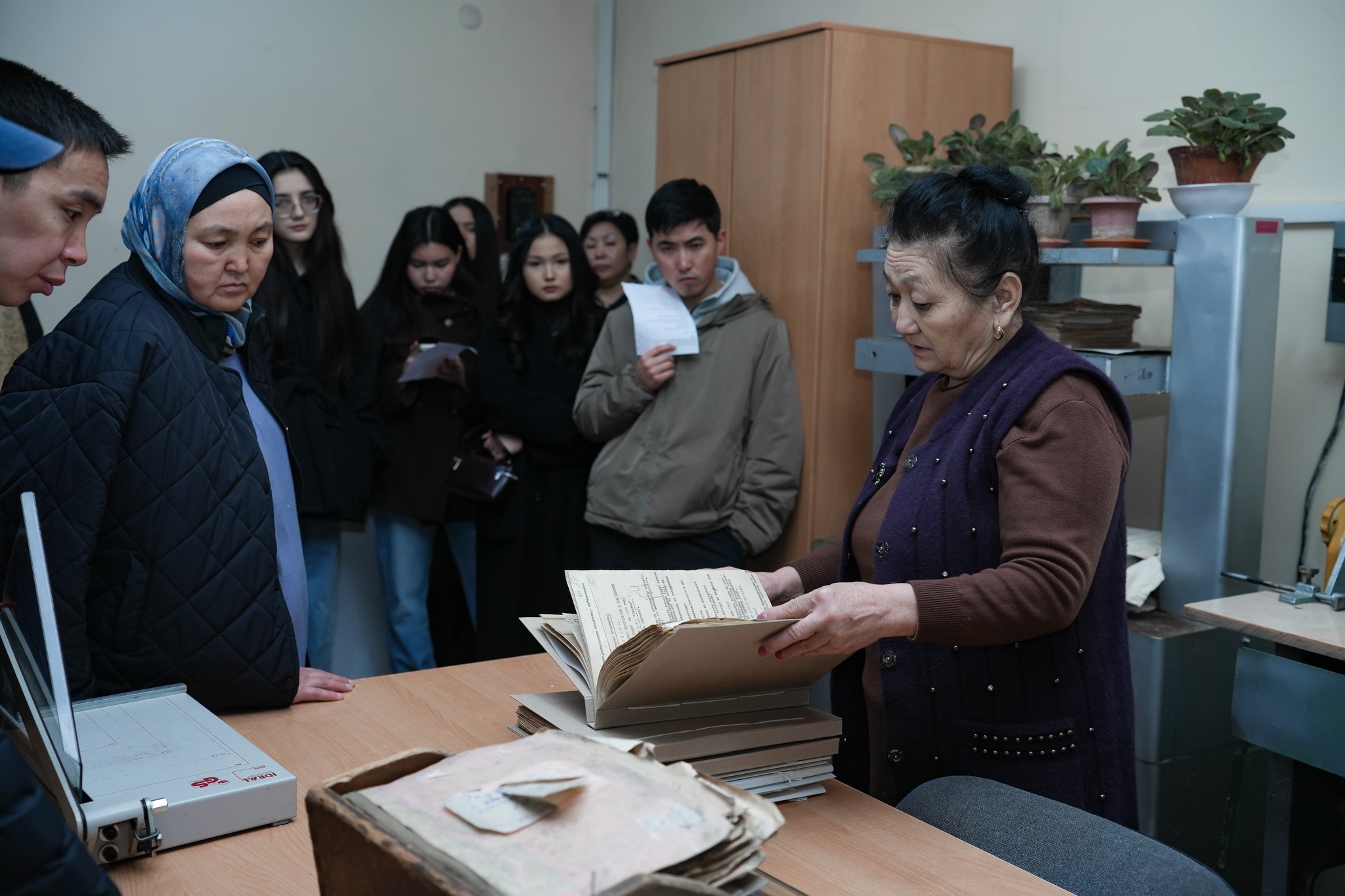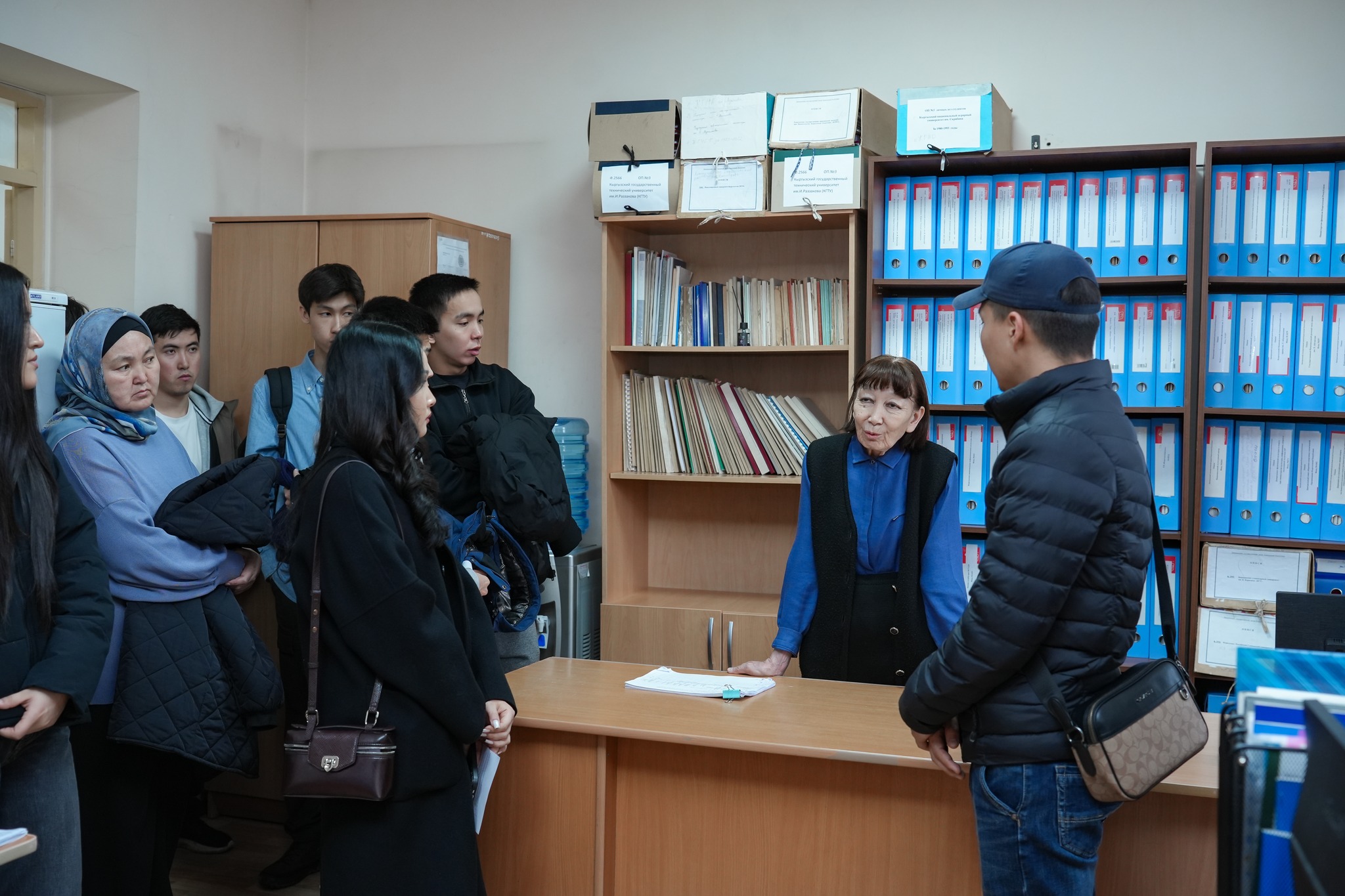 В Центральном государственном архиве КР студенты познакомились с историей архивного дела в Кыргызстане, узнали, как формируются фонды, побывали в читальном зале, а затем в хранилище документов. Помимо этого они увидели процесс оцифровки документов и узнали какие сложности возникают при цифровизации. В заключение студенты побывали в отделе по работе с исследователями и познакомились с порядком составления запросов на выявление документов.