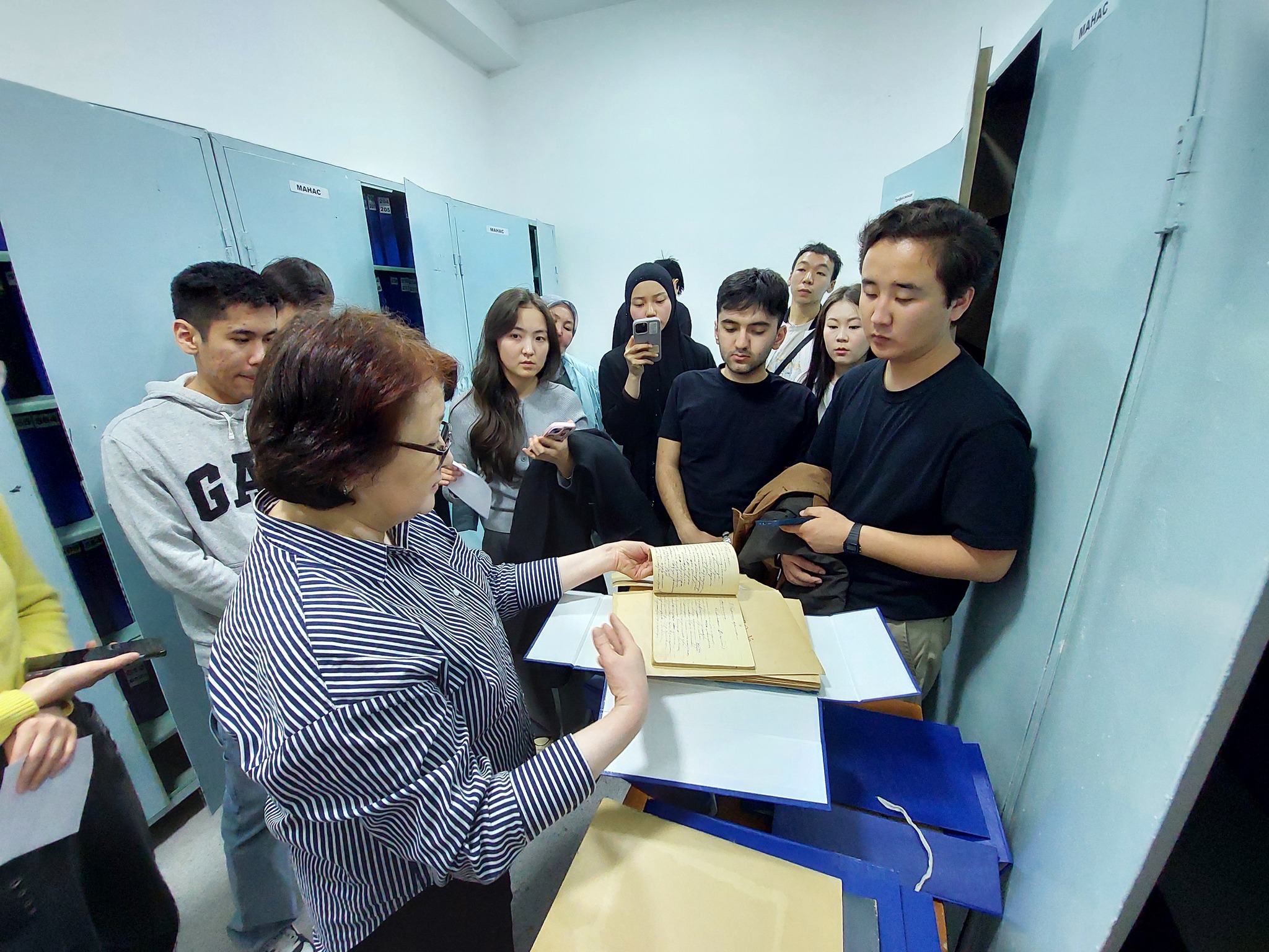 Студенты посетили фондохранилище и увидели первые записи эпоса «Манас», в том числе записи варианта Сагымбая Орозбакова, собранные Каюмом Мифтаковым, Ыбырай Абрахмановым и другими видными учеными. Они также познакомились с рукописными документами разных лет, записаные арабским шрифтом, латиницей и кириллицей. Было отмечено, что многие записи эпоса «Манас» и малых эпосов, сделанные в разные годы, до сих пор остаются неизученными.