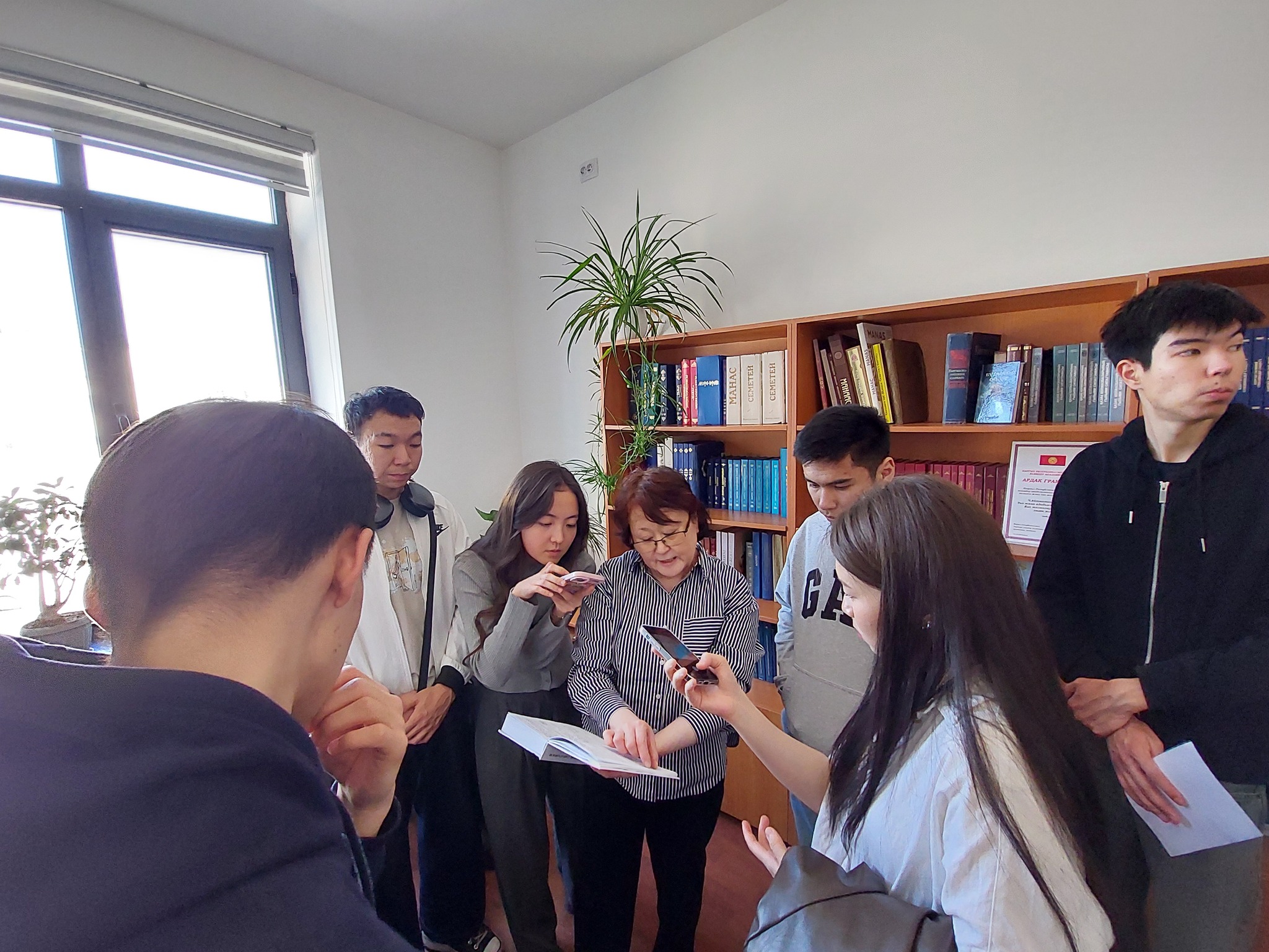 Не менее интересным стало посещение Института литературы им. Чингиза Айтматова Национальной академии наук КР. Здесь студенты побывали в фонде рукописей и познакомились с уникальными документами. Особенность фонда заключается в том, что в нем хранятся материалы, которые по своему содержанию относятся к устному народному творчеству.